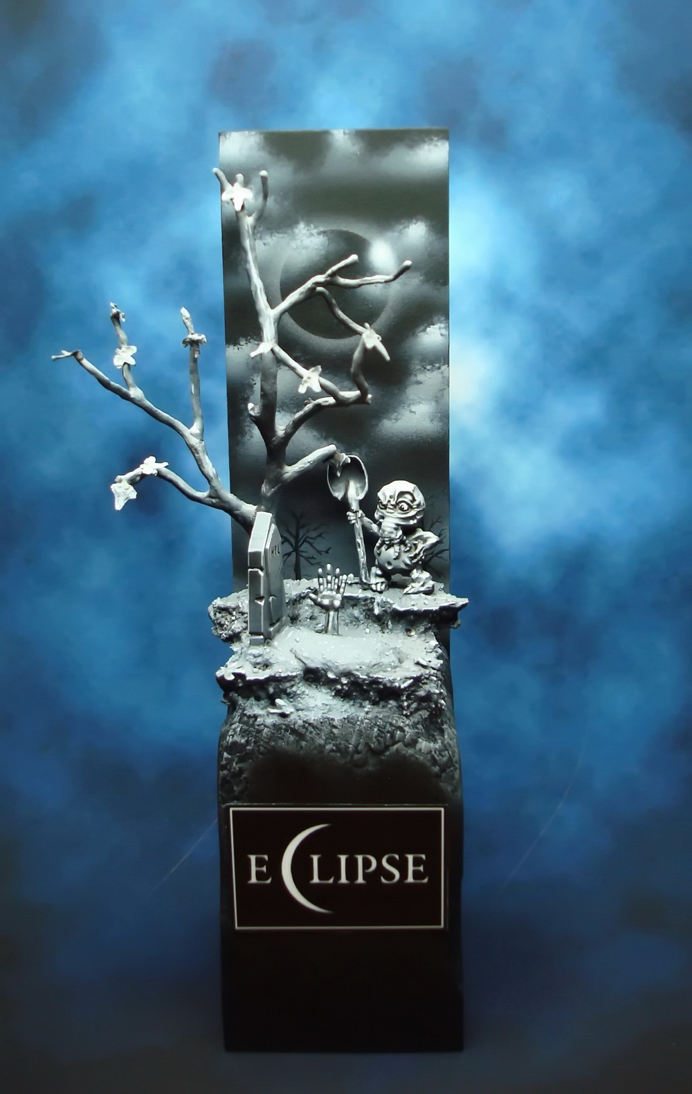 Pour le fun, voici un mini diorama en monochrome réalisé plutot rapidement. Pour peindre le tout, je me suis contenté d’un pot de noir et de blanc Vallejo game air et d’un peut de medium…
