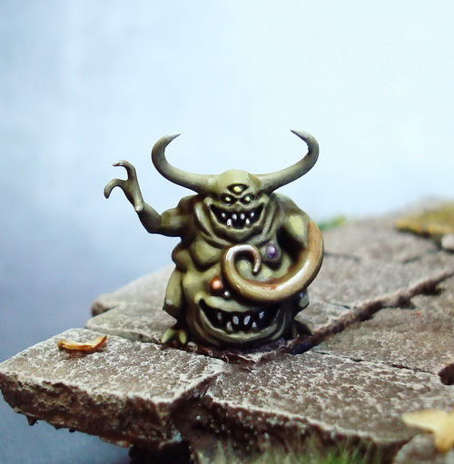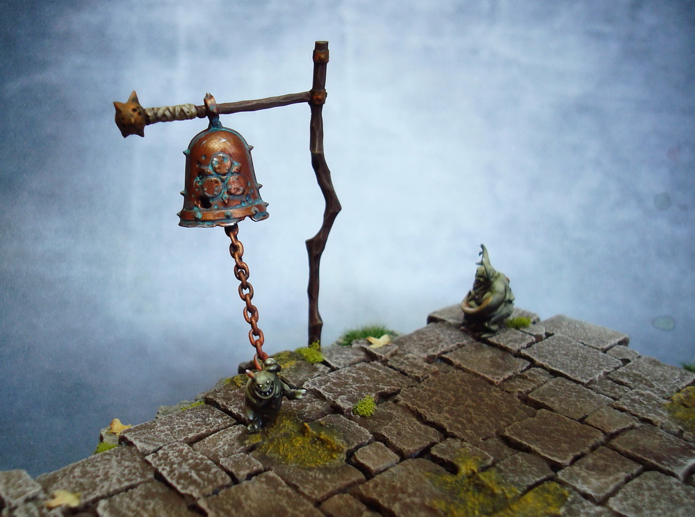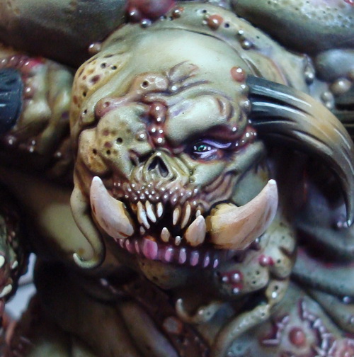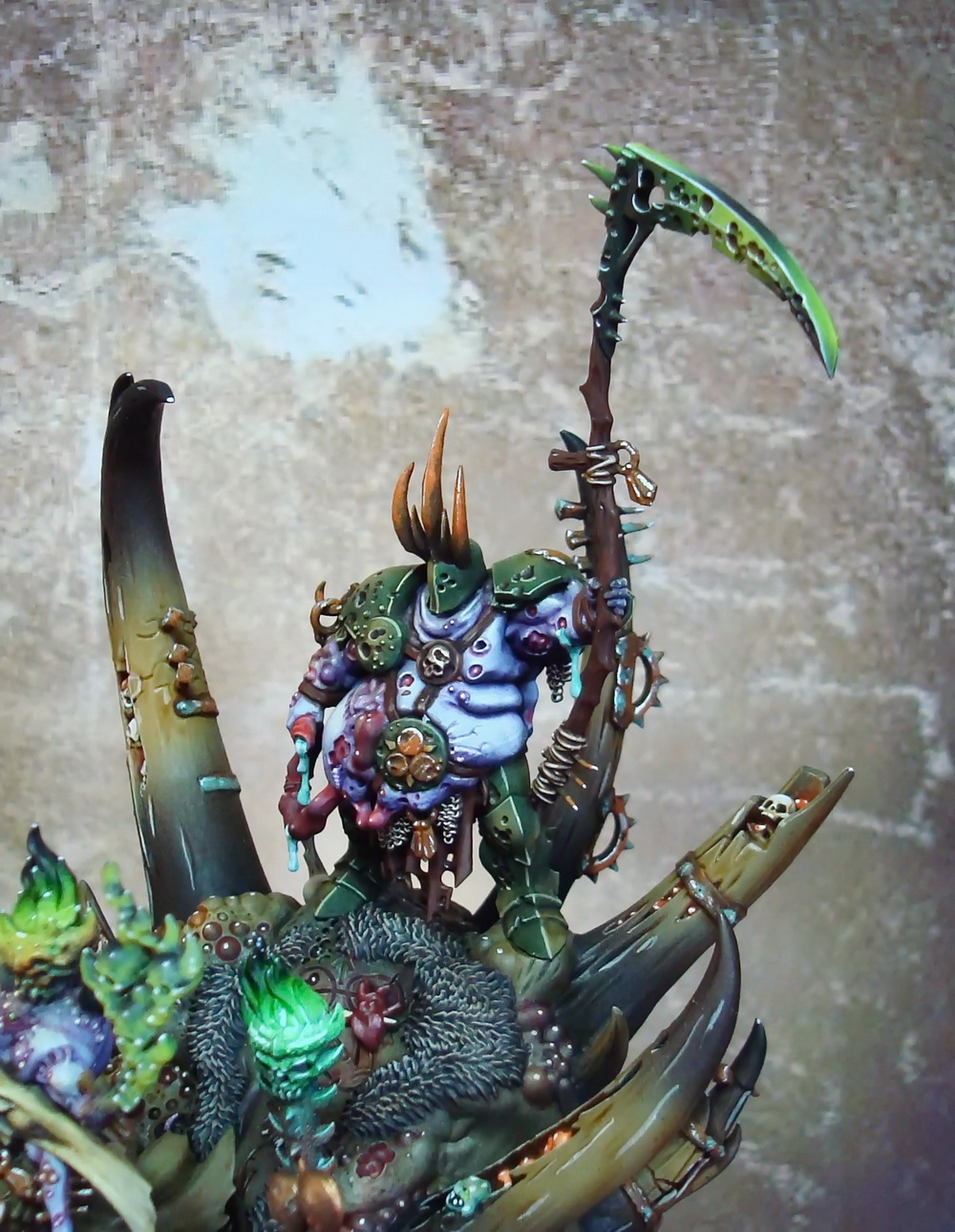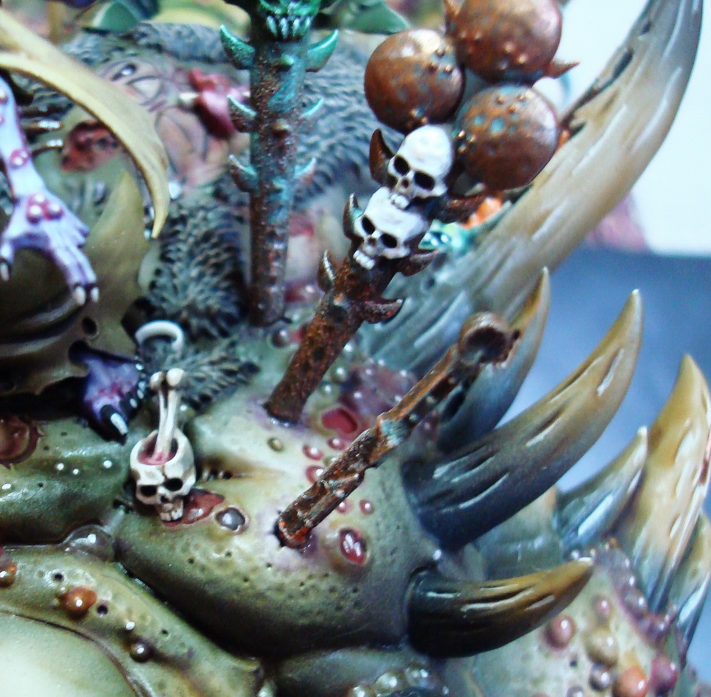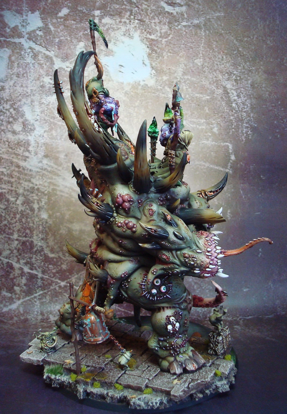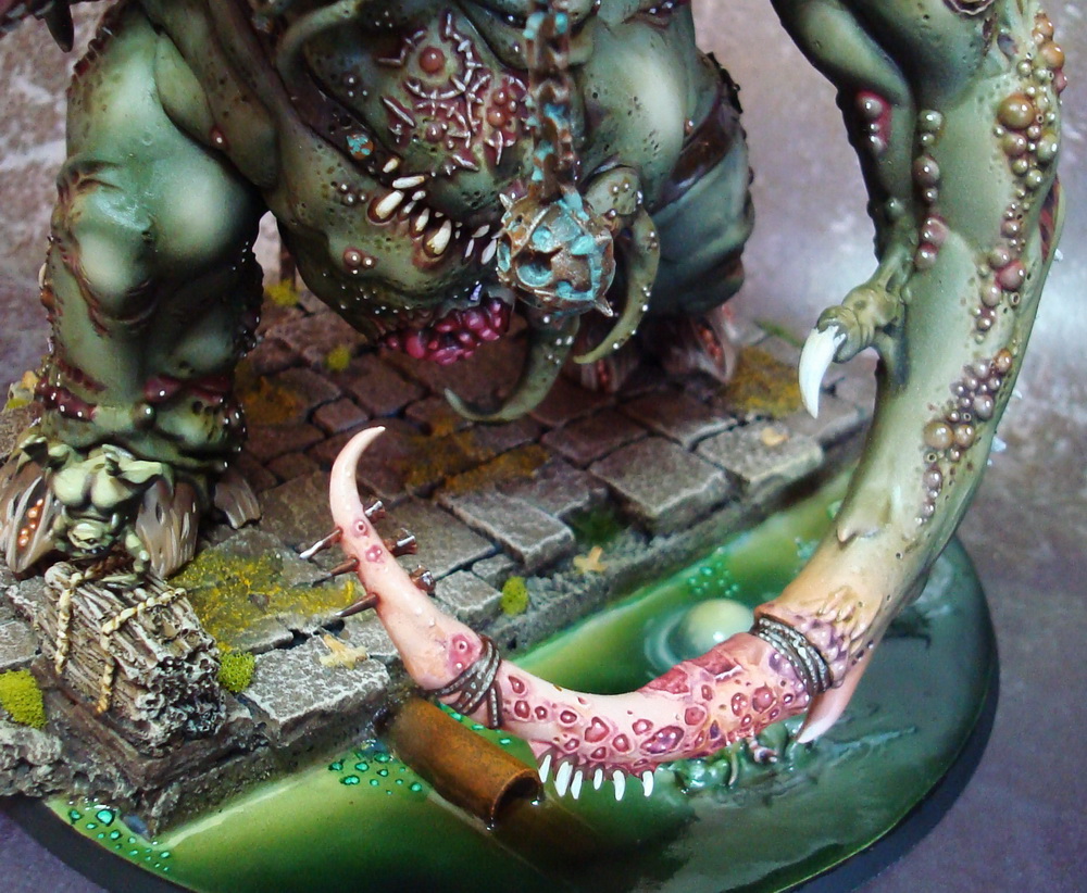 Le socle est une base de 130mm agrémenté de divers moulage en plâtre perso et quelques nurglings qui s’amusent bien ^^.