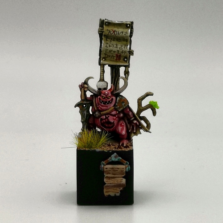 Sur la plupart des grappes de la gamme Nurgle de chez GW, il y à quelques petits nurglings optionnels avec tous des bouilles différentes. Il doit bien y avoir entre 20 et 30 models différent je pense. Pour débuté, j’avais fabriquer une simple petite barre en bois à 7 models (chiffre de Nurgle) pour avoir une idée du visuel. Dans l’ensemble j’ai trouvé ça rigolo ^^.