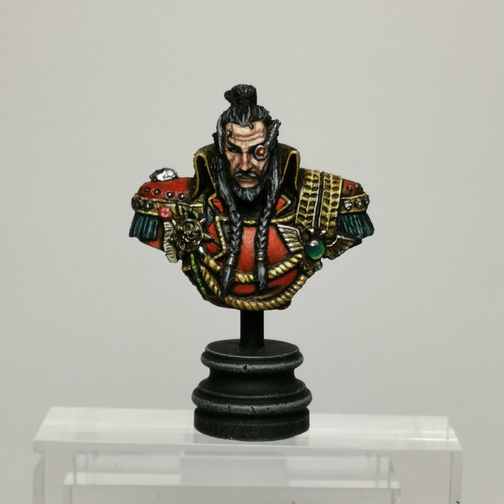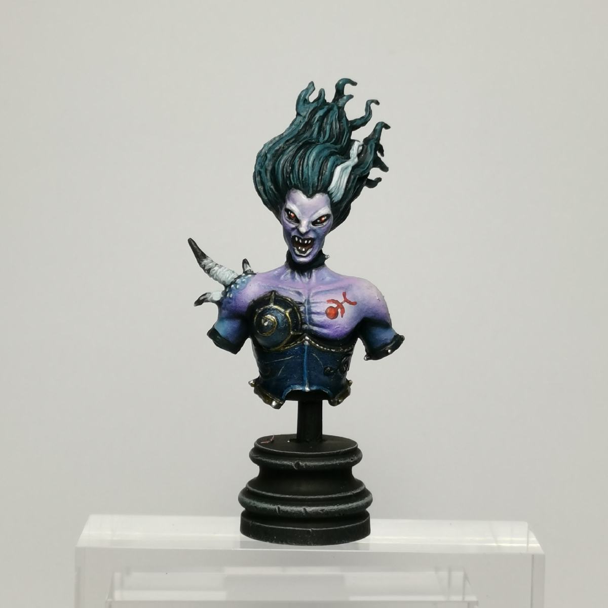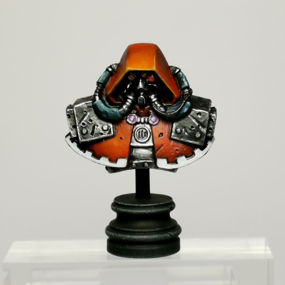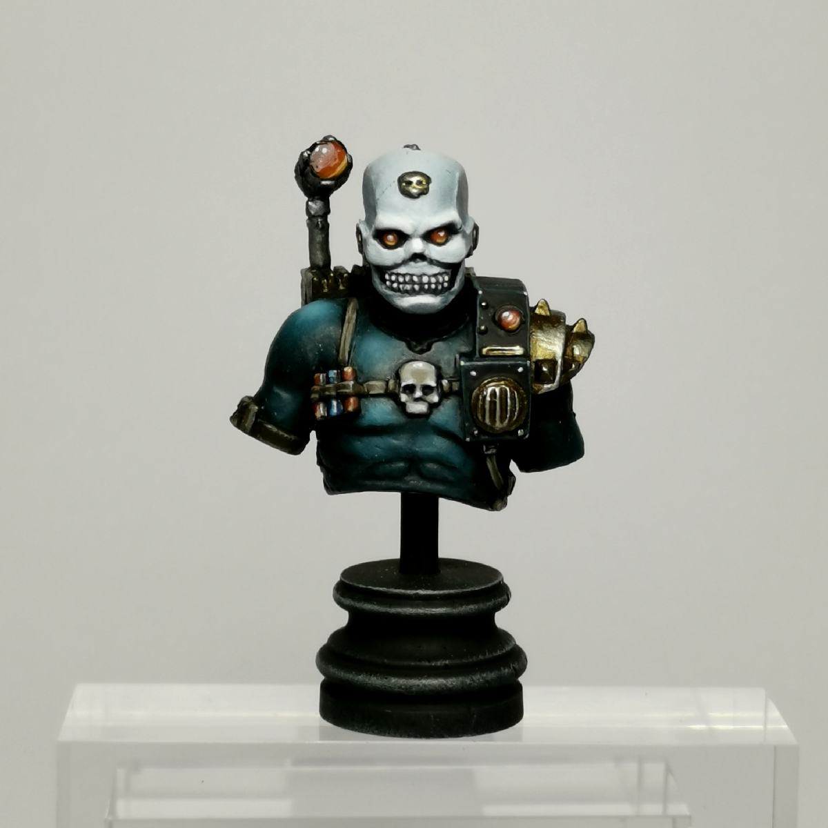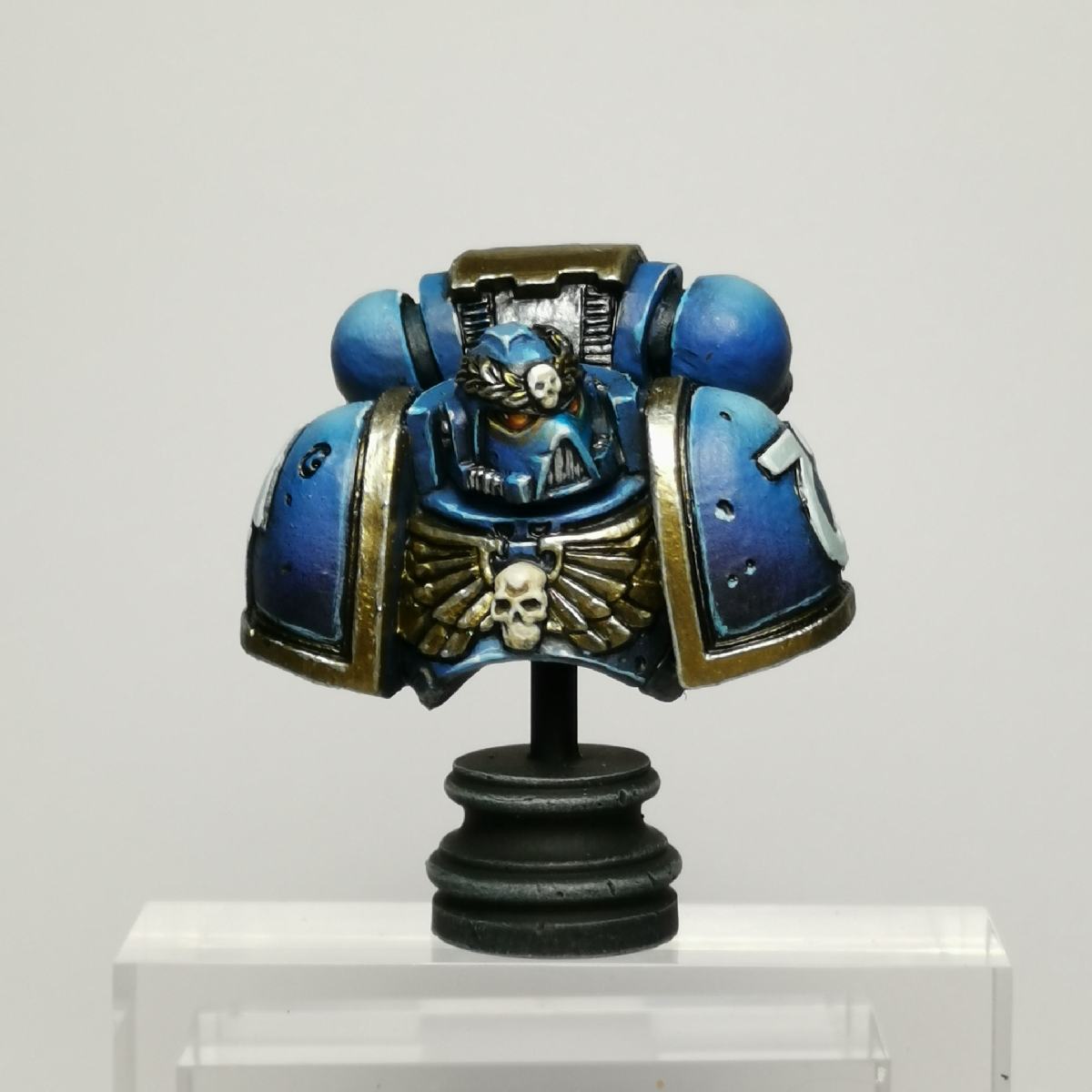 Alors, concernant la peinture. Pas de secret, tout les bustes sont diffèrent. La peinture à la chaine est donc exclue. C’est par un que je me lance dans le projet. Au moins, pas d’ennuis ni de répétitivité. Je pose quelque bases de couleur lors de la sous couche à l’aerographe. Ensuite je passe un jus enamel sur la plupart des détails et intercises et nettoie le surplus au nettoyant. ensuite, détails… Et la c’est l’angoisse 😱. La sculpture est tellement approximative que les arêtes sont quasi inexistantes, les traits grossier et je ne parle même pas de la matière même des bustes qui est impossible à poncé. Voila voila ^^.