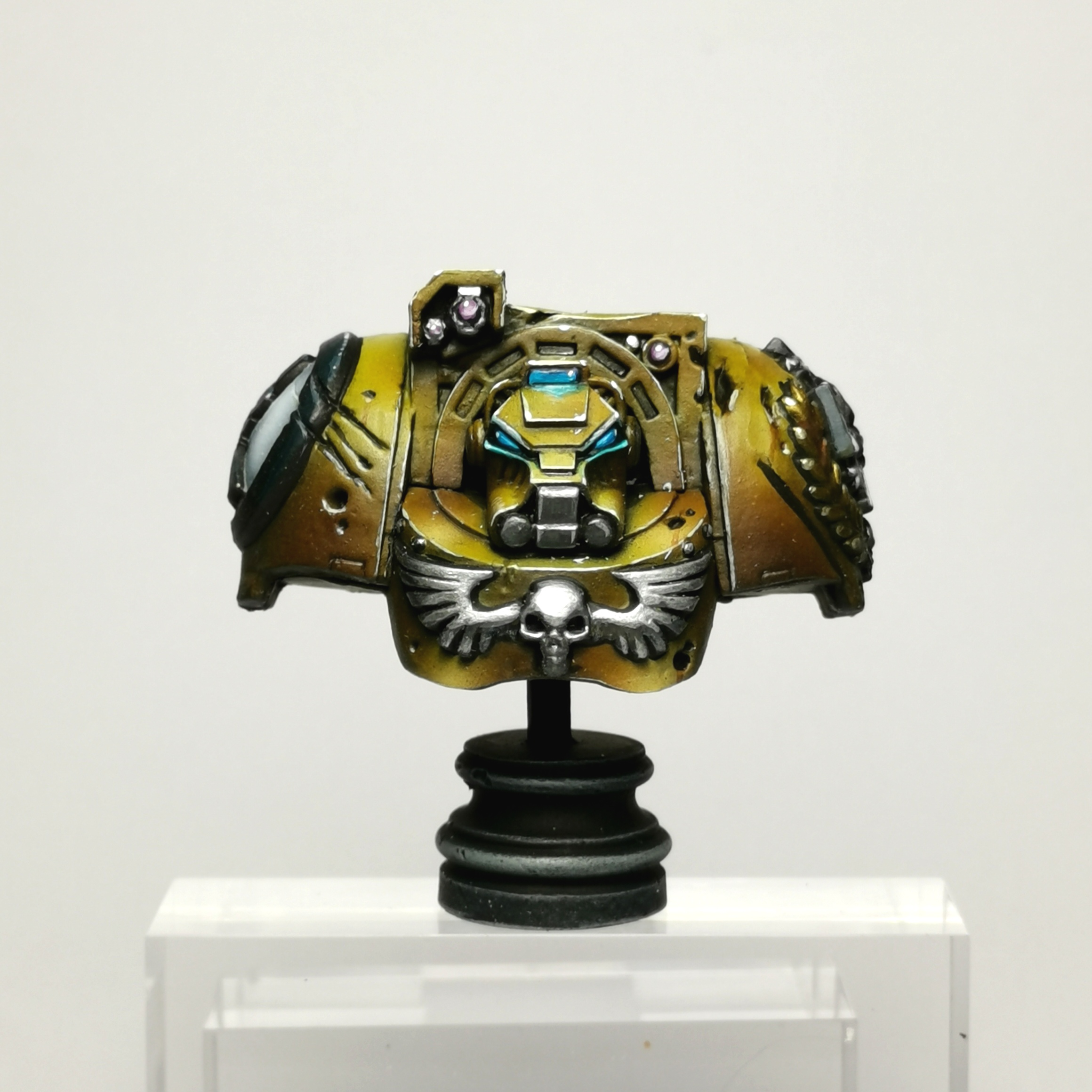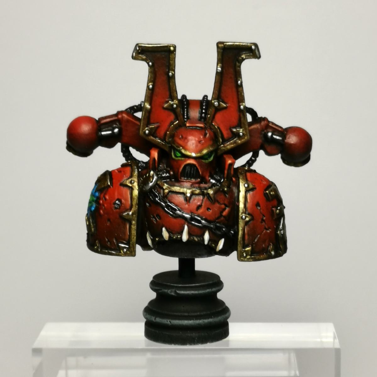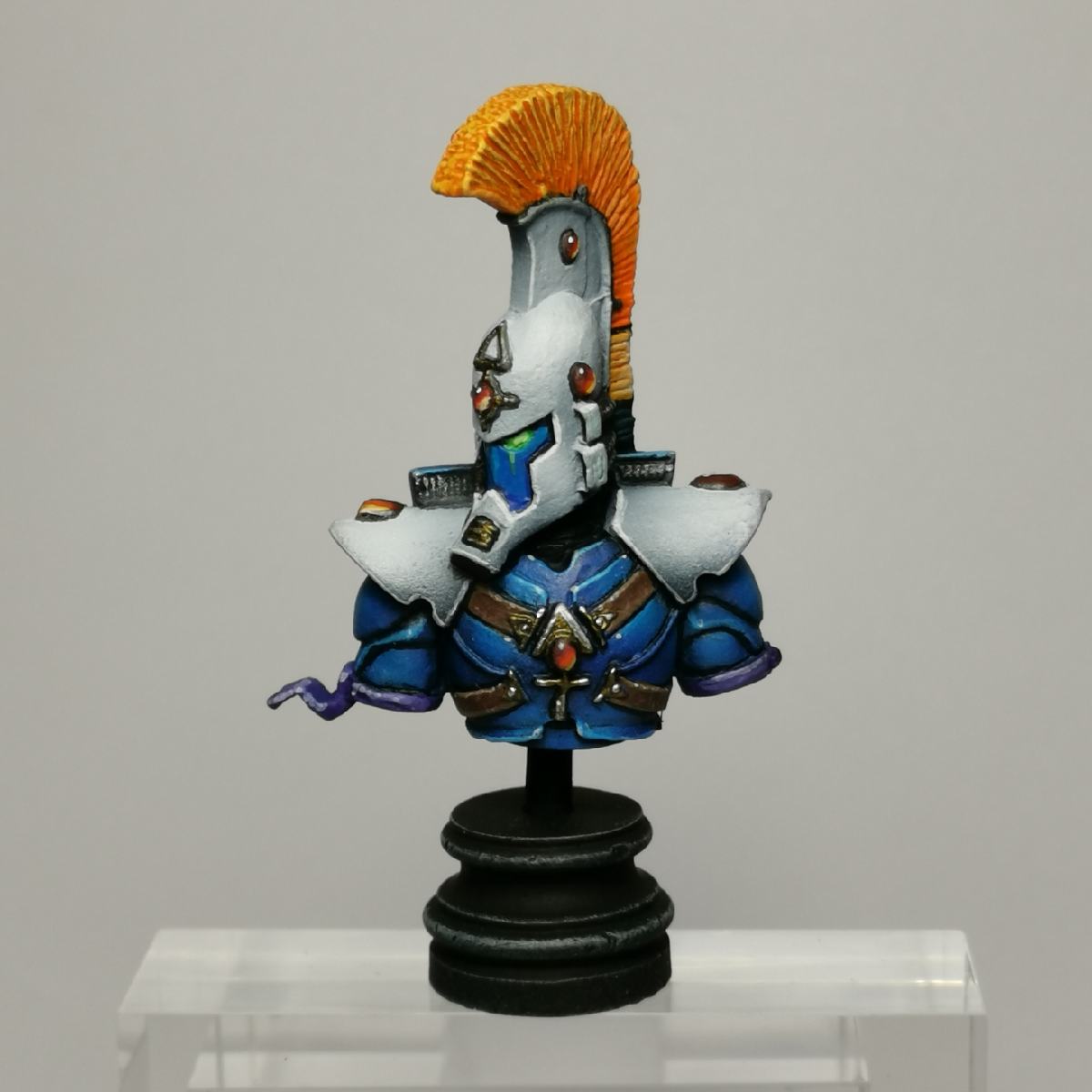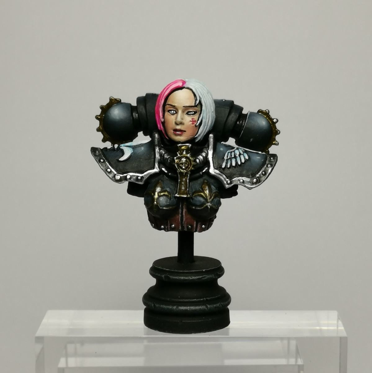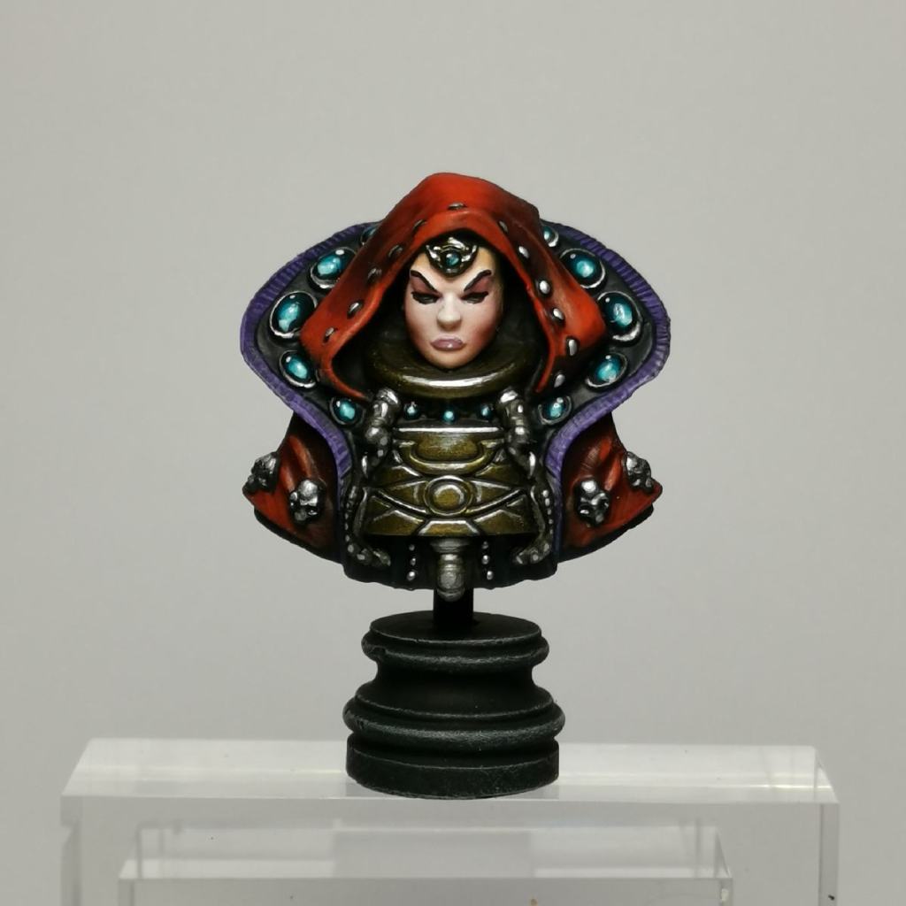 Alors, concernant la peinture. Pas de secret, tout les bustes sont diffèrent. La peinture à la chaine est donc exclue. C’est par un que je me lance dans le projet. Au moins, pas d’ennuis ni de répétitivité. Je pose quelque bases de couleur lors de la sous couche à l’aerographe. Ensuite je passe un jus enamel sur la plupart des détails et intercises et nettoie le surplus au nettoyant. ensuite, détails… Et la c’est l’angoisse 😱. La sculpture est tellement approximative que les arêtes sont quasi inexistantes, les traits grossier et je ne parle même pas de la matière même des bustes qui est impossible à poncé. Voila voila ^^.